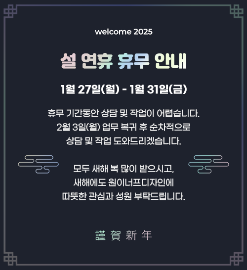 설 연휴 동안 상담 및 작업이 어려운 점 많은 양해 부탁 드립니다.
