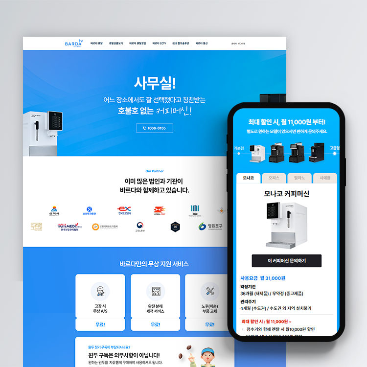 아임웹 커피머신 렌탈 랜딩페이지